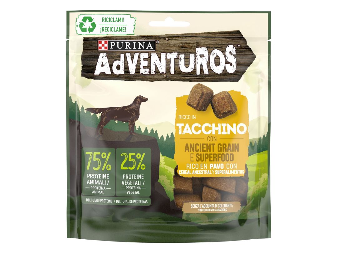 Δεν υπάρχει τίποτα πιο ικανοποιητικό από το να επιλέγετε για το σκύλο σας μια λιχουδιά που είναι τόσο γευστική όσο και θρεπτική, και να αισθάνεστε καλά που του το προσφέρετε! Γι αυτό η Purina AdVENTuROS δημιούργησε μια απολαυστική λιχουδιά, πλούσια σε κρέας Γαλοπούλας που συνδυάζει τη γεύση του άγριου με τη θρεπτική αξία των φυσικών αρχαίων σπόρων, όπως το κεχρί, και των superfoods όπως το μπιζέλι και το cranberry.