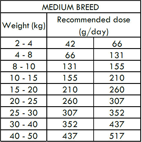 Πουλερικά 35% (εκ των οποίων Φρέσκια Γαλοπούλα χωρίς κόκκαλο 15%, Αφυδατωμένα Πουλερικα 20%), Λίπος Πουλερικών (13%), Αρακάς, Πράσινη Φάβα, Άλευρο Πατάτας, Υδρολυμένη Πρωτεΐνη Κοτόπουλου (10%), Αφυδατωμένη Πάπια (4%), Λιναρόσπορος, Αφυδατωμένος Πολτός Τεύτλου, Μέταλλα, Αφυδατωμένη Πικραλίδα (φυσική πηγή Φρουκτοολιγοσακχαριτών και ινουλίνης), Αφυδατωμένη Μαγιά Μπύρας, Λάδι Σολωμού, MOS (ολιγοσακχαρίτες μαννάνης) και Βήτα Γλυκαίοι, Αφυδατωμένο Μπρόκολλο, Αφυδατωμένο Σπανάκι, Αφυδατωμένα Σμέουρα, Αφυδατωμένα Μύρτιλλα, Υδροχλωρική Γλυκοζαμίνη (300 mg/kg), Θειική Χονδροϊτίνη (300 mg/kg), Εκχύλισμα Φυτών (Rosemarinus sp, Vitis sp, Curcuma sp, Citrus sp, Eugenia sp)