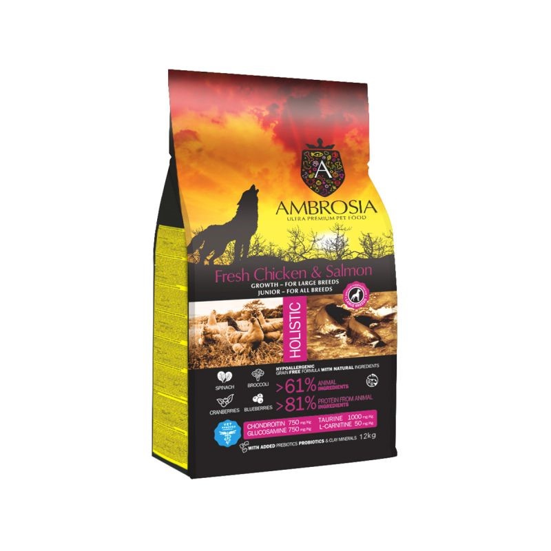 Ambrosia Fresh Chicken & Salmon Growth Large Breeds 12kg Ξηρά Τροφή χωρίς Σιτηρά για Κουτάβια Μεγαλόσωμων Φυλών με Κοτόπουλο και Σολομό Chicken & Salmon
