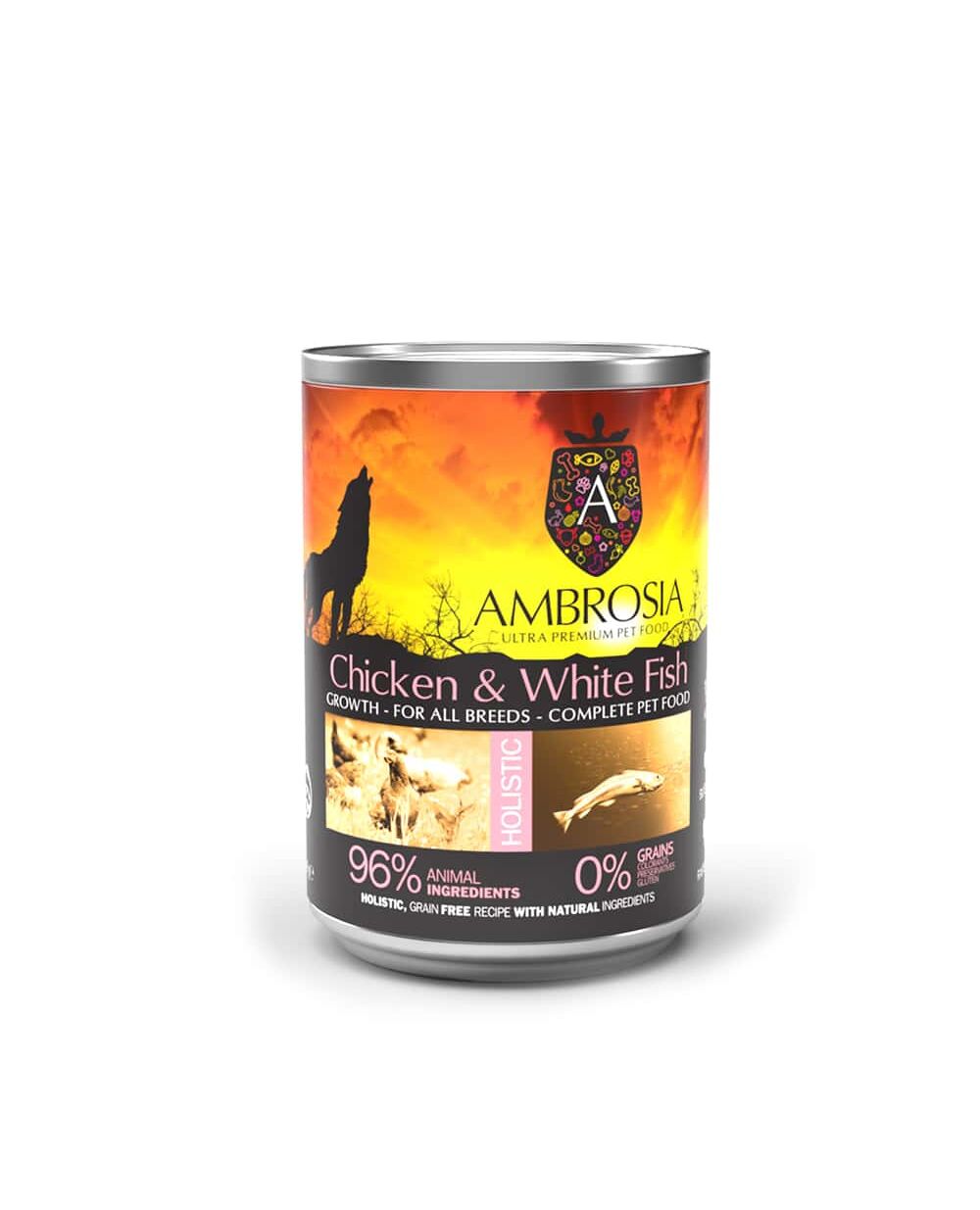Ambrosia Υγρή Τροφή για Κουτάβι με Κοτόπουλο και Ψάρι χωρίς Σιτηρά 400γρ.