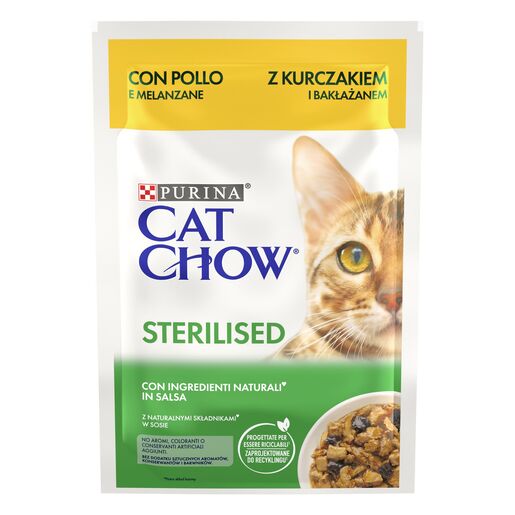 CAT CHOW ADULT CAT STERILISED Κοτόπουλο& Μελιτζάνες σε Σάλτσα 85g