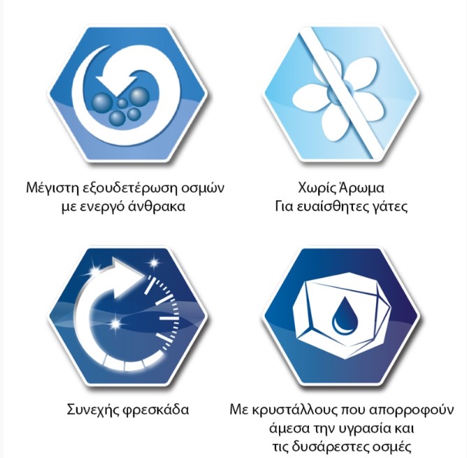 Η Ever Clean Multi Crystals συνδυάζει την μοναδική φόρμουλα της Ever Clean μαζί με υπεραπορροφητικούς κρυστάλλους σιλικόνης, όπου απορροφούν άμεσα την υγρασία και σταματούν τις δυσάρεστες οσμές που θα συσσωρεύονταν στον πάτο της λεκάνης υγιεινής. Έτσι μπορείτε τώρα να διατηρήσετε το σπίτι σας και την λεκάνη υγιεινής καθαρά και να δημιουργήστε ένα περιβάλλον ευζωίας για την γάτα σας.