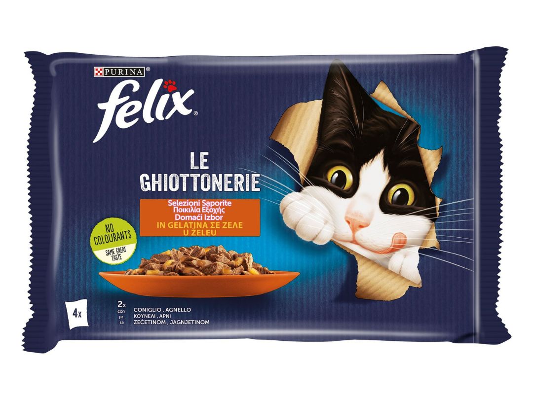 Φακελάκι υγρής τροφής για Γάτες. FELIX AGAIL Πολυσυσκευασία με Κουνέλι και Αρνί σε Ζελέ 4x85g