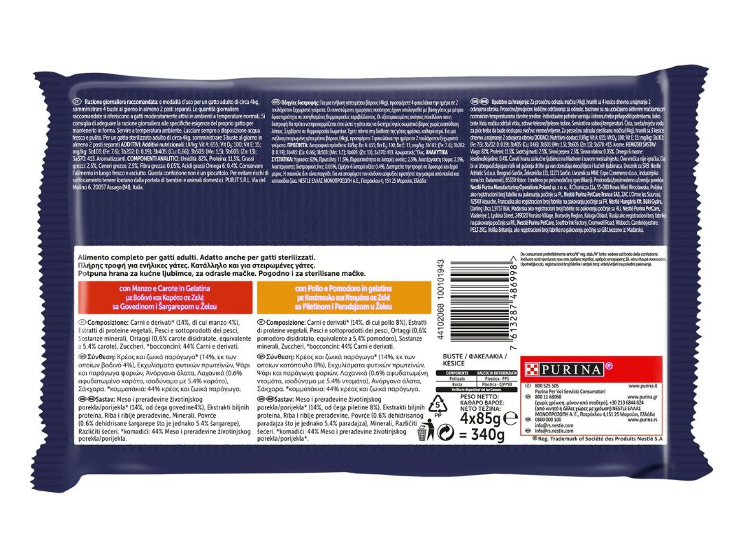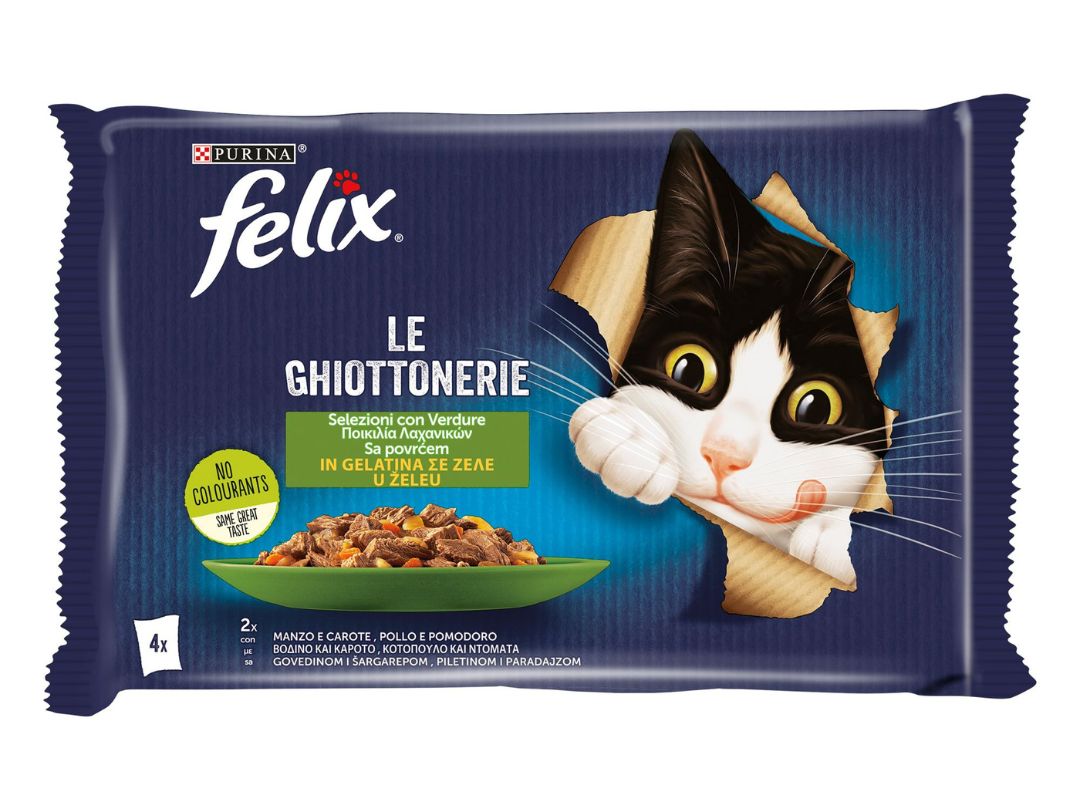 Φακελάκι υγρής τροφής για Γάτες. FELIX AGAIL Πολυσυσκευασία με Βοδινό με Kαρότα και Κοτόπουλο με Ντοματα 4x85g