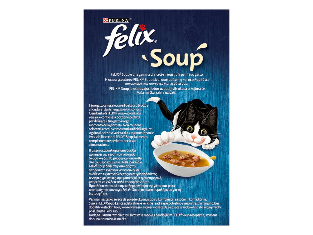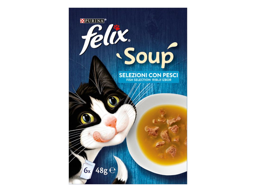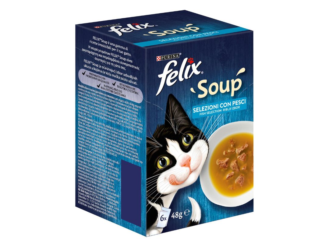 Συμπληρωματική υγρή τροφή για Γάτες. FELIX Soups Πολυσυσκευασία με Μπακαλιάρο, Τόνο και Γλώσσα 6x48g