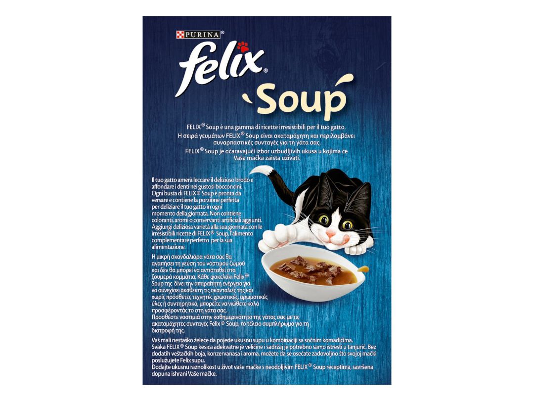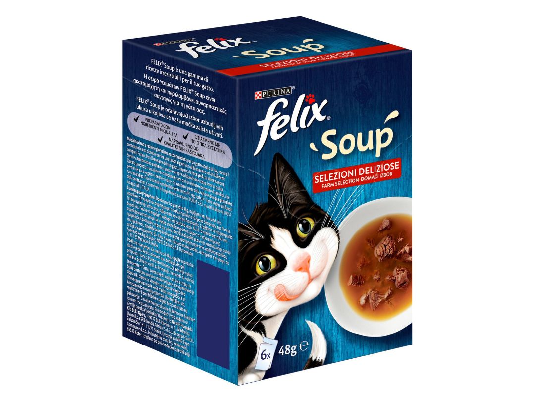 Συμπληρωματική υγρή τροφή για Γάτες. FELIX Soups Πολυσυσκευασία με Βοδινό, Κοτόπουλο και Αρνί 6x48g