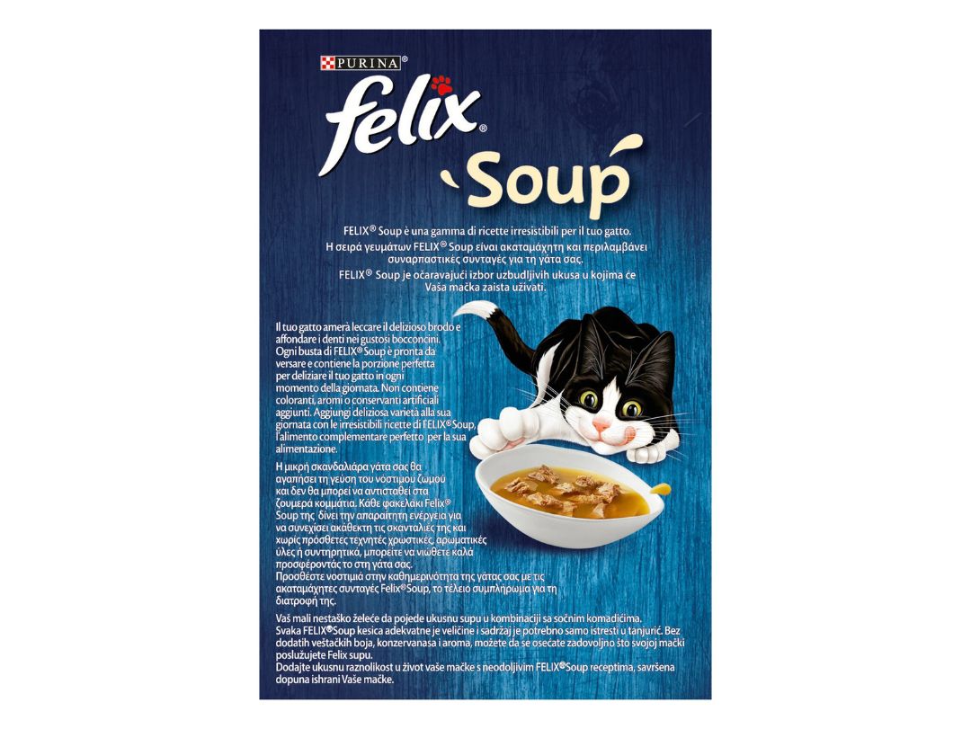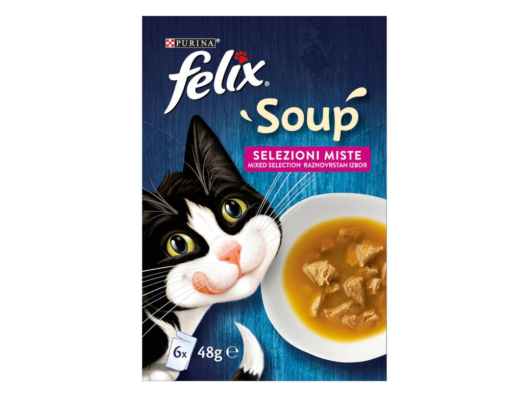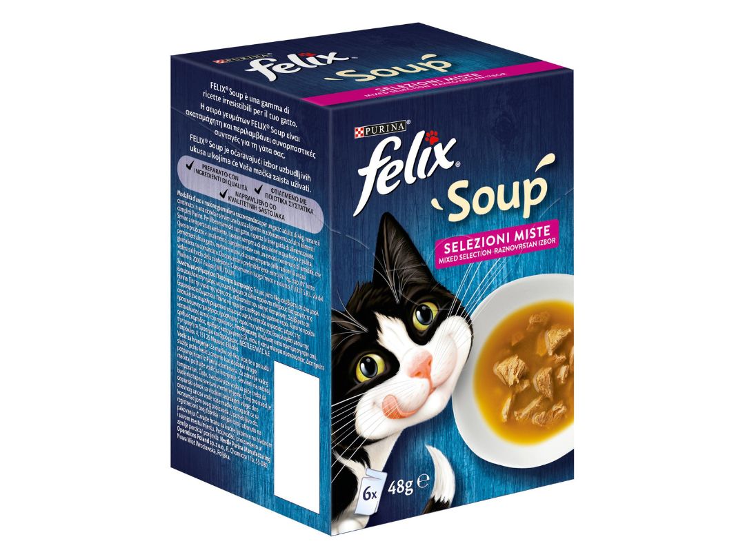 Φακελάκι υγρής τροφής για Γάτες. FELIX Soups Πολυσυσκευασία με Βοδινό, Κοτόπουλο και Τόνο 6x48g