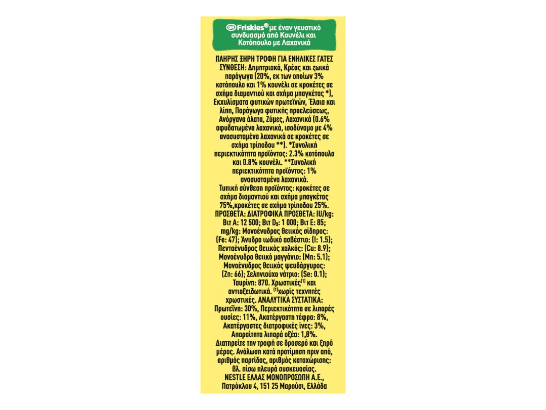 Ξηρή Τροφή Γάτας FRISKIES ΚΟΥΝΕΛΙ, ΚΟΤΟΠΟΥΛΟ & ΠΡΟΣΘΕΤΑ ΛΑΧΑΝΙΚΑ 400g
