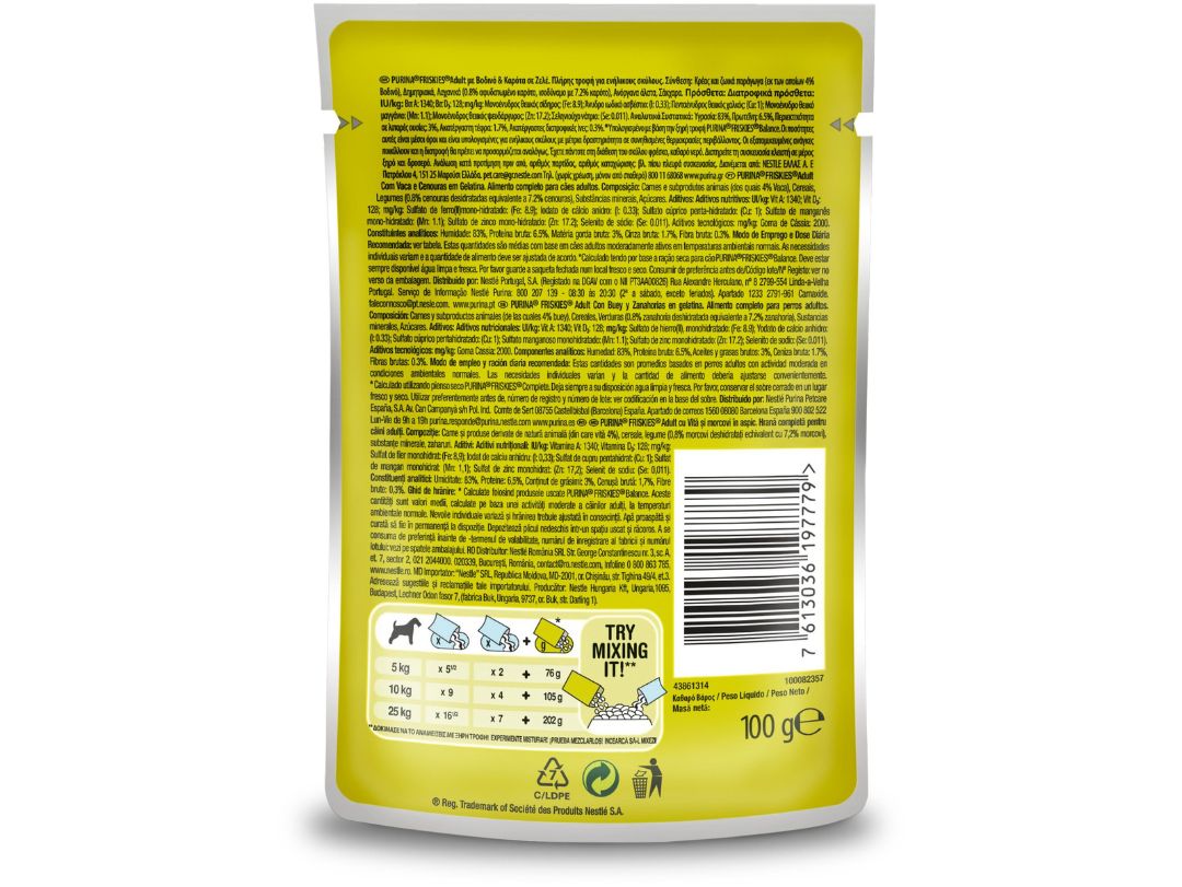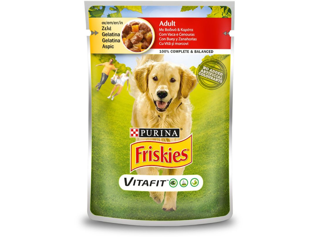 Φακελάκια Υγρής τροφής για ενήλικους σκύλους FRISKIES με Βοδινό και Καρότα σε Ζελέ 1x100g