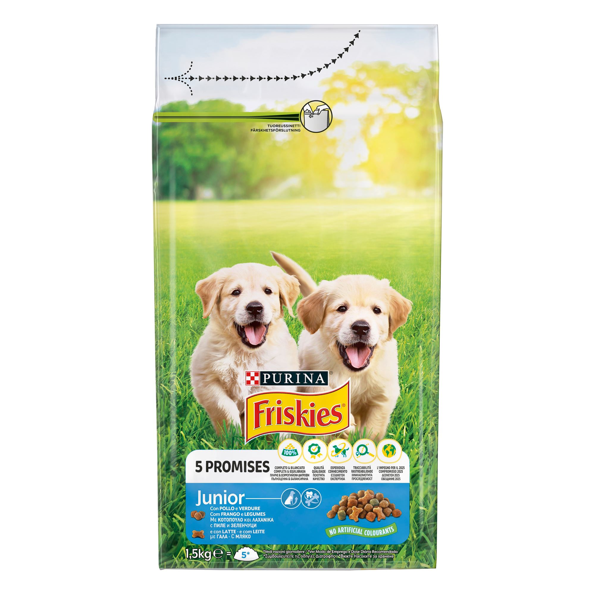 Friskies Junior ξηρή τροφή για κουτάβια με Κοτόπουλο, Πρόσθετo γάλα και Λαχανικά 6x1,5Kg