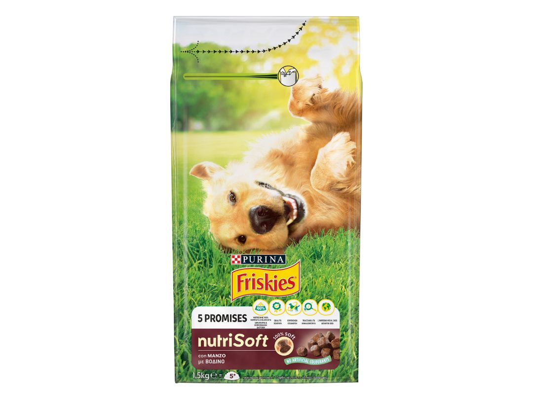 Friskies Nutri Soft ξηρή τροφή για ενήλικους σκύλους με μαλακές κροκέτες Βοδινό 1,5Kg