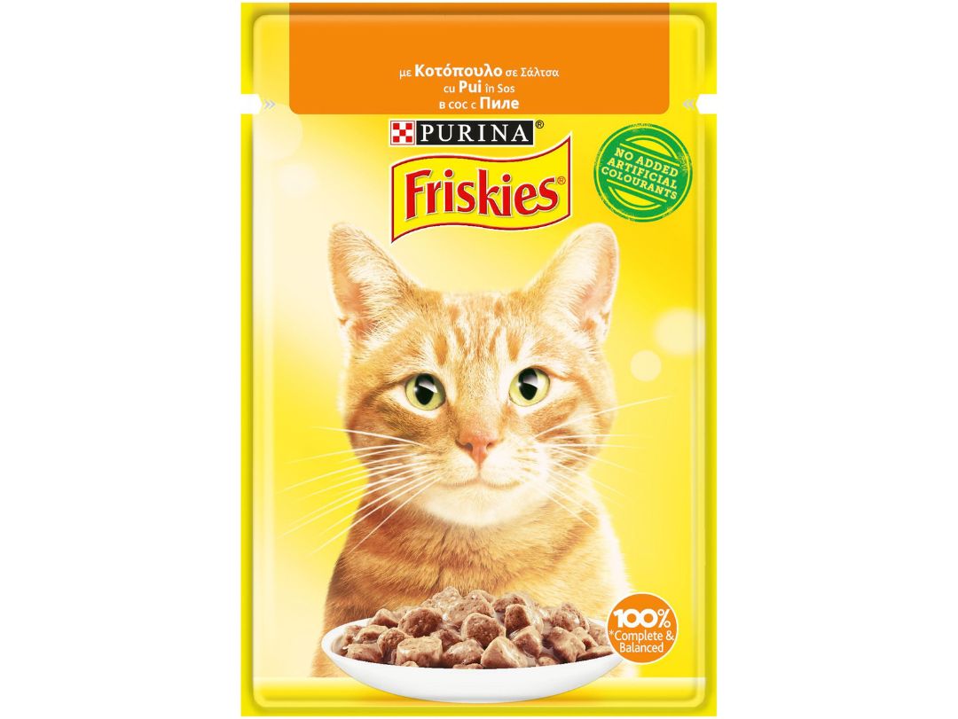 Friskies® Πλήρης τροφή για ενήλικες γάτες με Κοτόπουλο σε σάλτσα - 85g φακελάκι