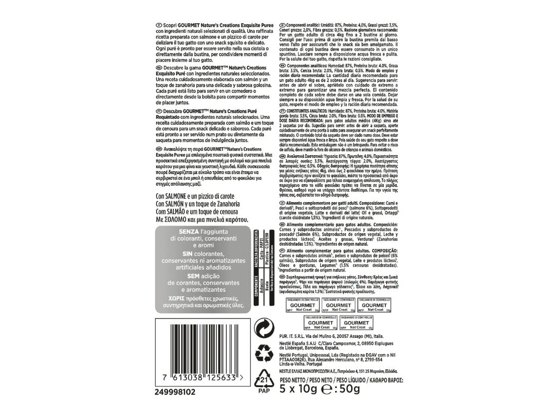 GOURMET NATURE'S CREATIONS PUREE με Σολομό και Καρότα (5Χ10g)