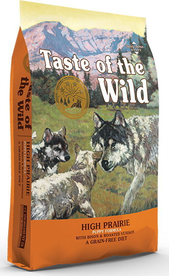 Πλήρης ξηρά τροφή High Prairie Puppy από την Taste of the Wild με βίσωνα και ψητό ελάφι κατάλληλη για κουτάβια και νεαρούς σκύλους όλων των φυλών.