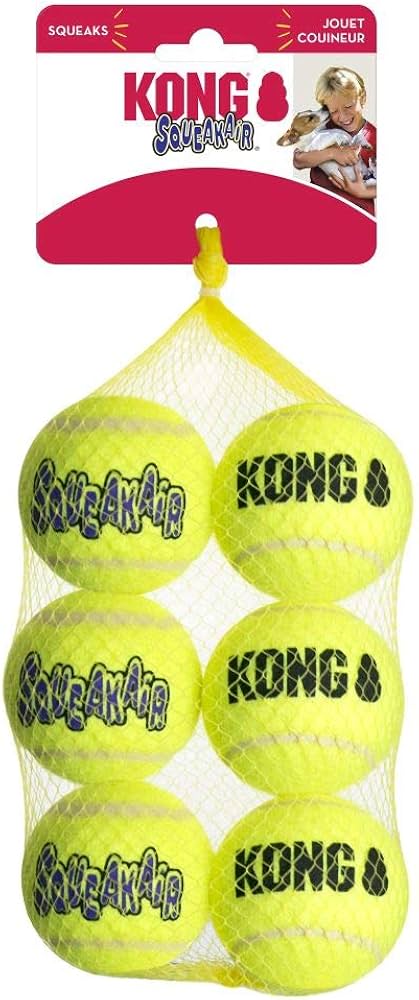 Η KONG AirDog Squeakair Ball συνδυάζει δύο κλασικά παιχνίδια σκυλιών - την μπάλα του τένις και τα ηχηρά αντικείμενα - δημιουργώντας ένα ιδανικό παιχνίδι για να πετάτε και να το κυνηγά ο σκύλος σας. Δεν φθείρει τα δόντια του σκυλιού, καθώς είναι κατασκευασμένο από ειδικό, αισθητά απαλό, σε σύγκριση με το υλικό για τις κανονικές μπάλες του τένις. Ιδανικό για παιχνίδια Προκαλεί για παιχνίδι με τον χαρακτηριστικό θόρυβο τριξίματος Διατίθεται σε τρία μεγέθη: μικρό, μεσαίο, μεγάλο