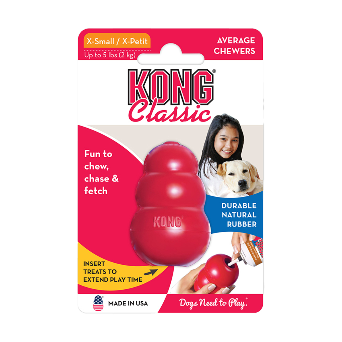 Οι σκύλοι έχουν από τη φύση τους έντονη ανάγκη για κυνήγι και μάσηση. Με το KONG Classic χαρίζετε στον τετράποδο φίλο σας ένα παιχνίδι, το οποίο είναι δημοφιλές εδώ και δεκαετίες και έχει σχεδιαστεί ειδικά για να ικανοποιεί αυτή την ανάγκη τους. Αυτό το διαχρονικό προϊόν της KONG αποτελείται από κόκκινο φυσικό καουτσούκ με ευχάριστη υφή, που προσκαλεί το σκύλο σας να απολαύσει δάγκωμα.
