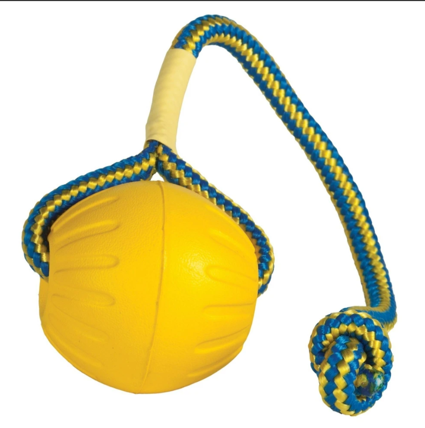 Μπάλα σκύλου με σχοινί κατασκευασμένη απο ανθεκτικό αφρώδες υλικό.