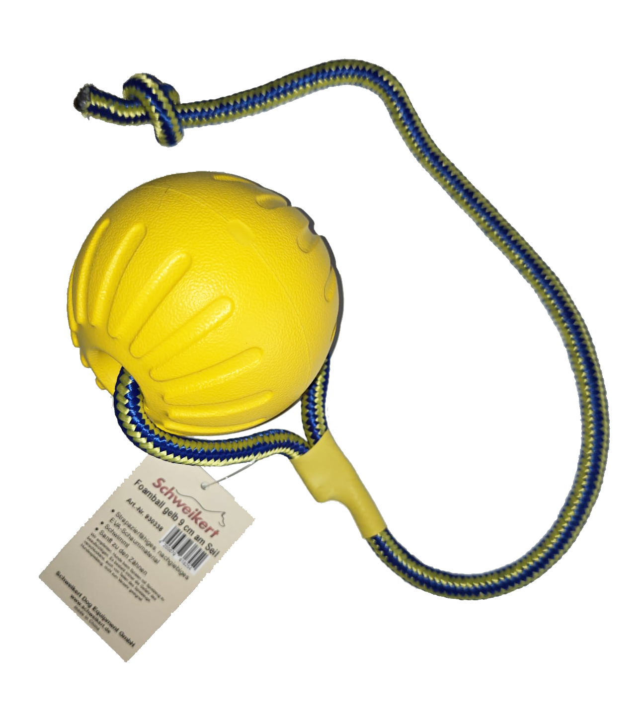 Μπάλακι σκύλου Foamball κίτρινο 9cm σε σχοινί Schweikert