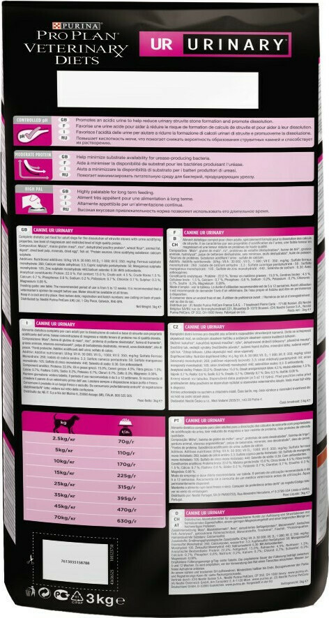 Η UR Urinary για σκύλους είναι μια εξαιρετικά εύγευστη και πλήρης κτηνιατρική δίαιτα που βοηθά στη διατροφική διάλυση ή/και στην πρόληψη του σχηματισμού ουρολίθων στρουβίτη στους σκύλους.