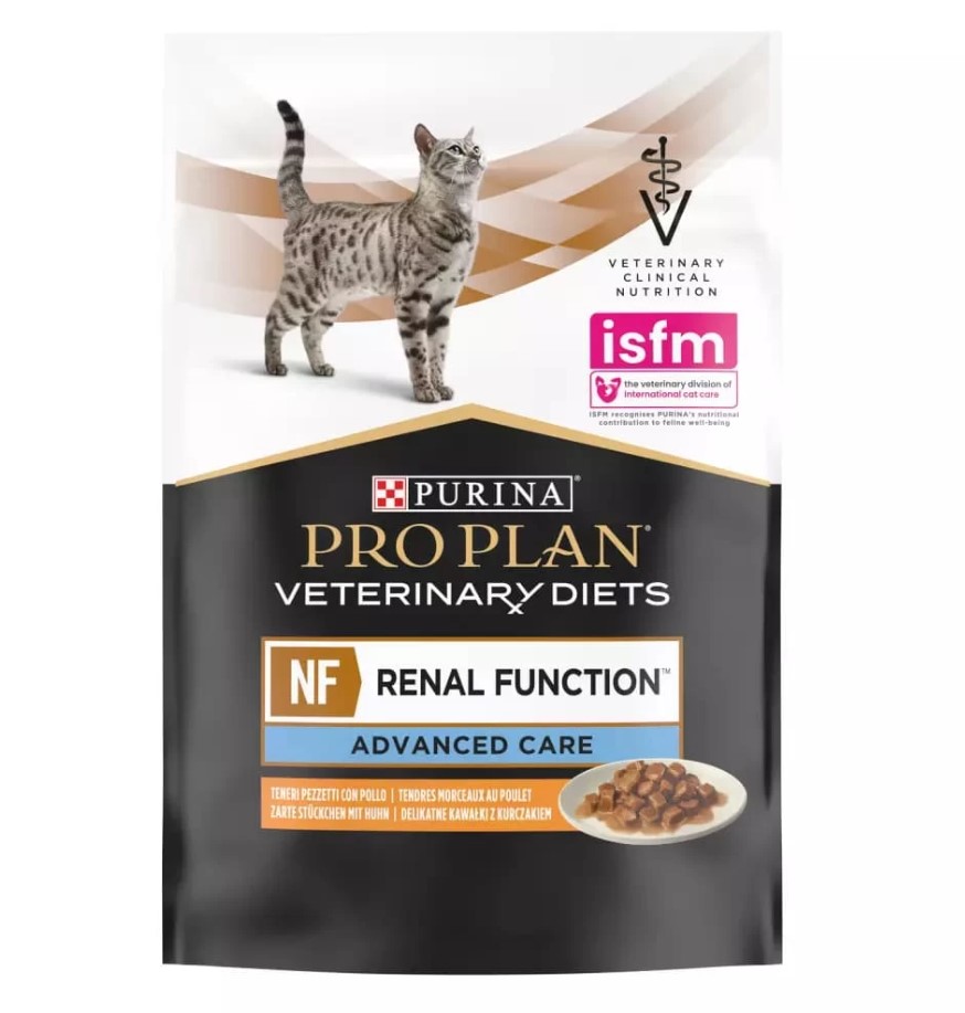 Κλινική δίαιτα, φακελάκι γάτας Purina Pro Plan NF Feline 85gr με κοτόπουλο, για την υποστήριξη νεφρικής ανεπάρκειας.