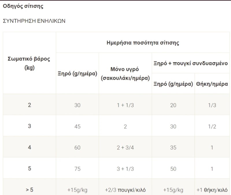 Διατροφικά πρόσθετα:IU/kg: , Βιταμίνη Α: 29450, Βιταμίνη D3: 422, Βιταμίνη Ε: 272 mg/kg:, Ταυρίνη: 1230.