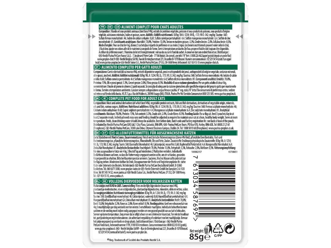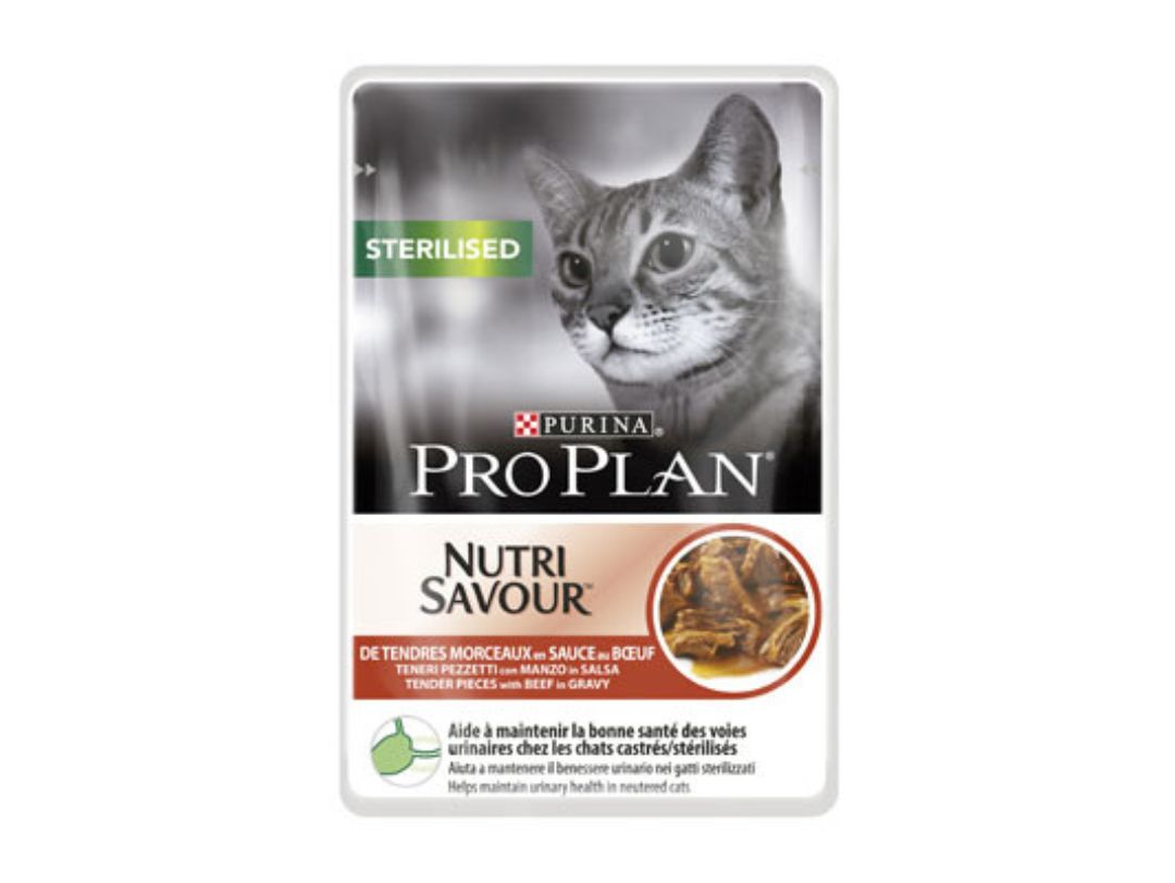 H PRO PLAN περιέχει συγκεκριμένους συνδυασμούς συστατικών, επιστημονικά σχεδιασμένους για να επηρεάσουν την μακρόχρονη υγεία της γάτας. Η PRO PLAN STERILISED NUTRISAVOUR είναι μία πλήρης τροφή για ενήλικες γάτες με τρυφερά κομματάκια με Βοδινό σε Σάλτσα.
