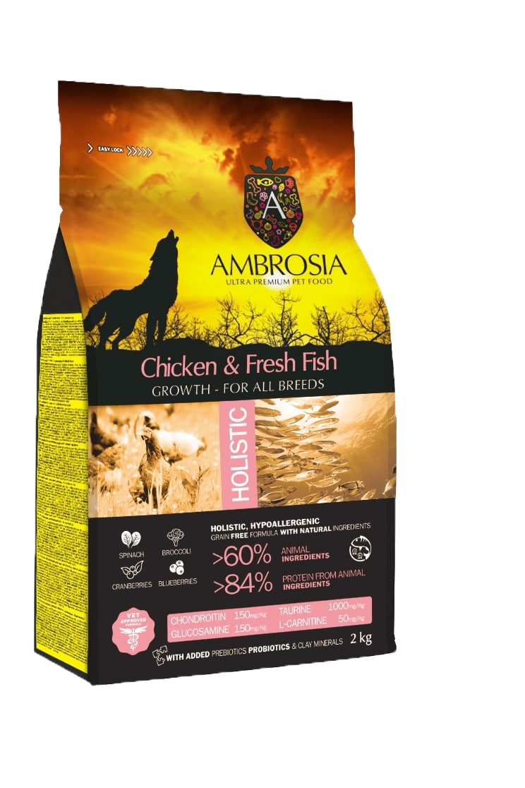 Για κουτάβια όλων των φυλών , με κοτόπουλο και φρέσκα ψάρια 6kg
