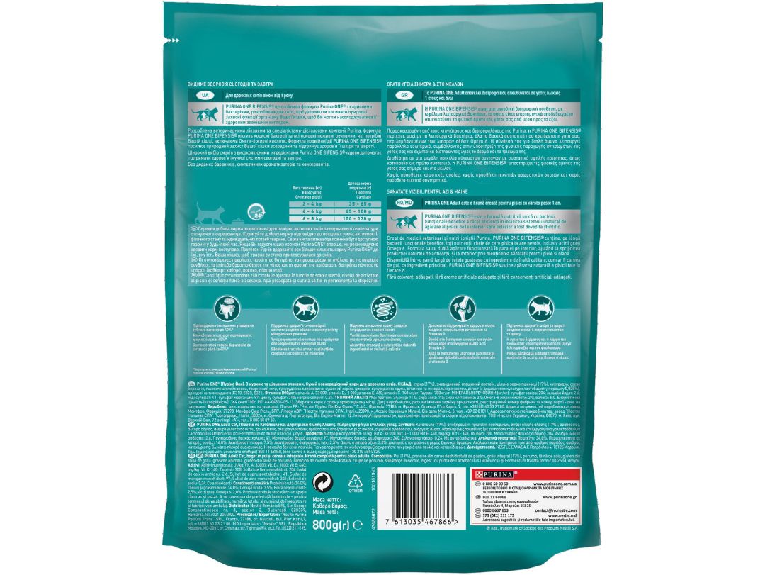 Διαθέσιμη σε μια μεγάλη ποικιλία εύγευστων συνταγών με συστατικά υψηλής ποιότητας, όπως βοδινό ως πρώτο συστατικό, η PURINA ONE BIFENSIS® υποστηρίζει τις φυσικές άμυνες της γάτας σας σήμερα και στο μέλλον.