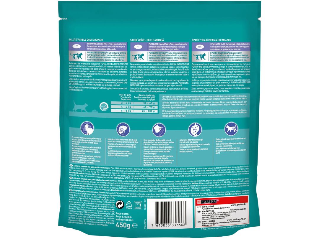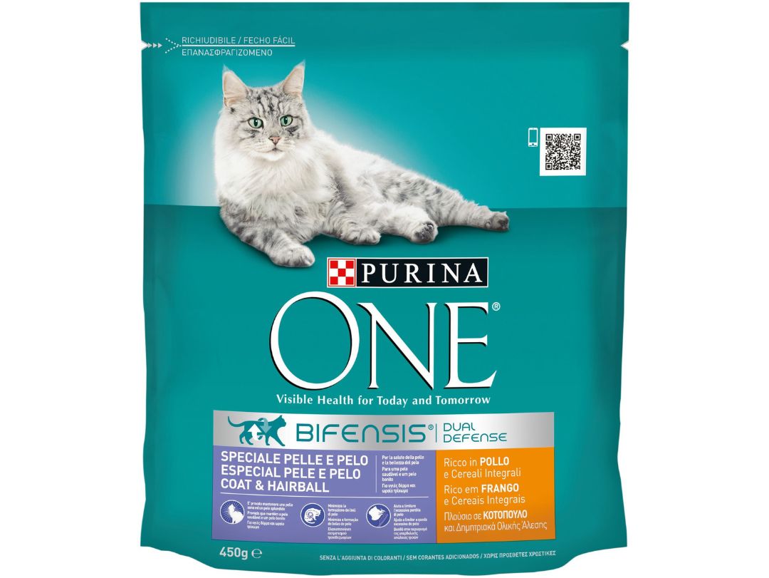 Πλήρης τροφή για ενήλικες γάτες Purina ONE COAT & HAIRBALL Κοτόπουλο & Δημητριακά Ολικής Άλεσης