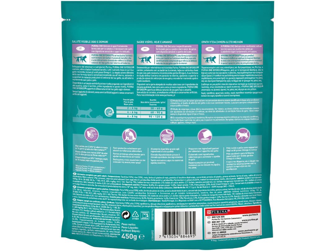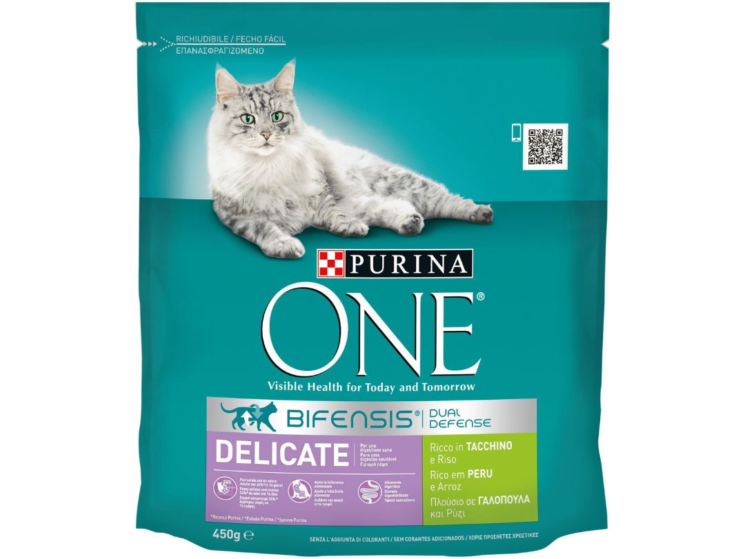 Πλήρης τροφή για ενήλικες γάτες Purina ONE DELICATE Γαλοπούλα & Ρύζι 450gr