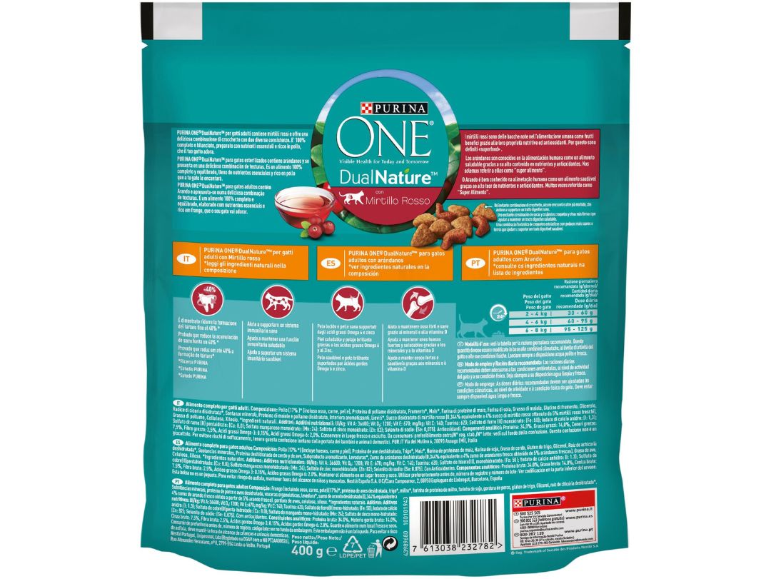 Πλήρης τροφή για ενήλικες γάτες Purina ONE Dual Nature Chicken Cranberry Adult 400g