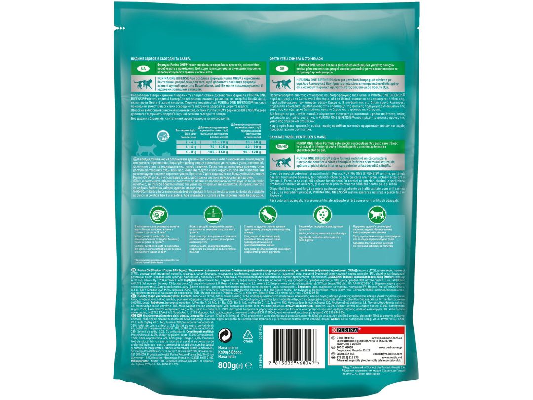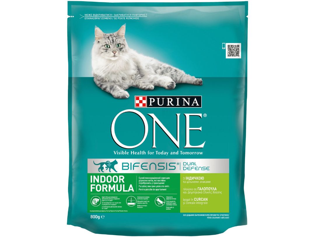 Πλήρης τροφή για ενήλικες γάτες PURINA ONE Indoor Formula, Πλούσιο σε Γαλοπούλα και Δημητριακά Ολικής Άλεσης 800g