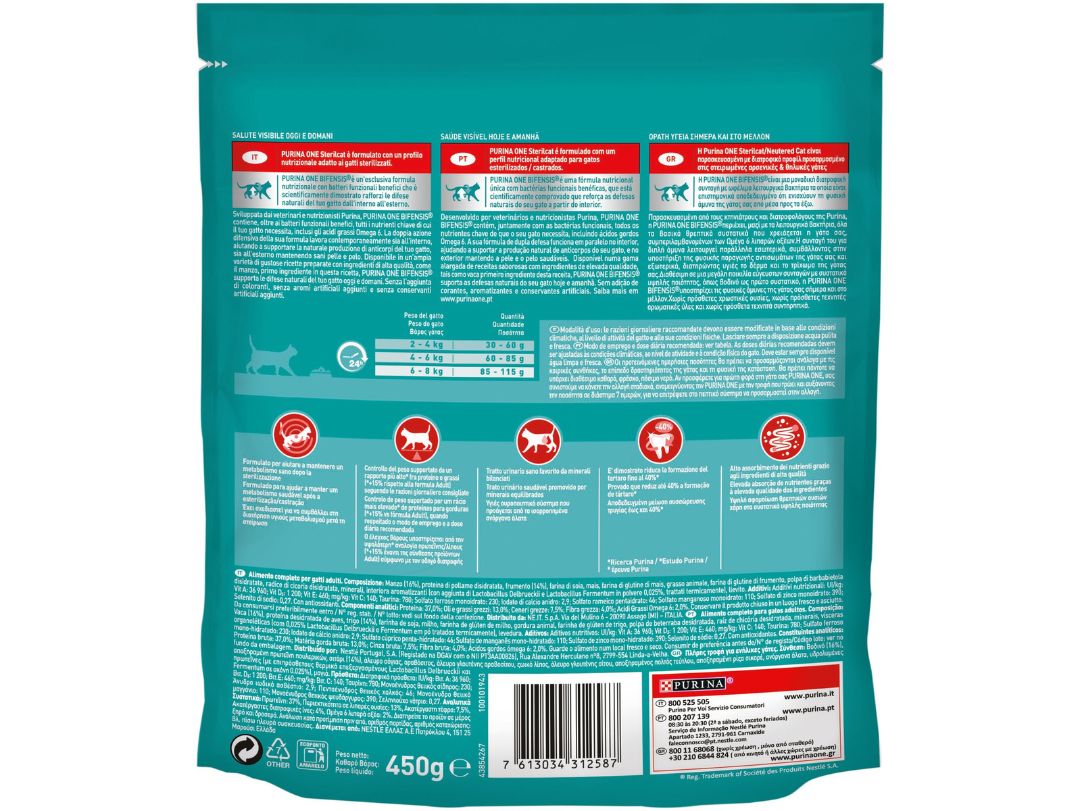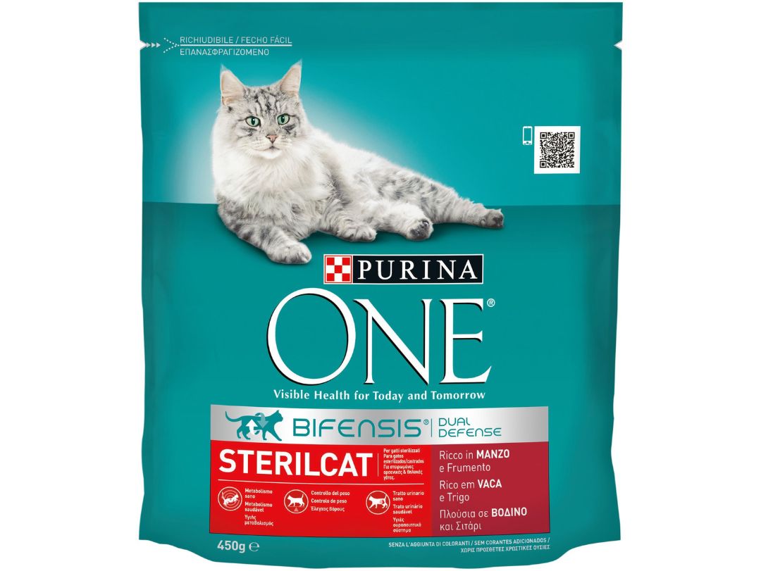 Πλήρης τροφή για ενήλικες γάτες Purina ONE Sterilcat Βοδινό & Σιτάρι 450gr
