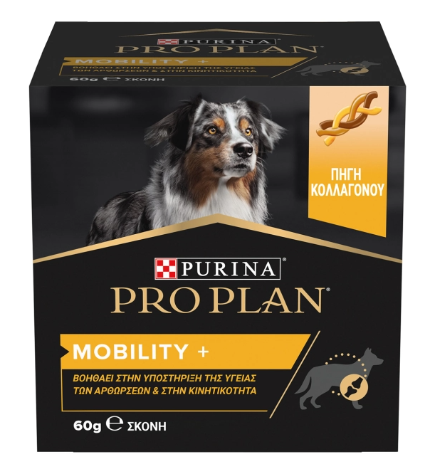 Το PRO PLAN® Mobility+ Συμπλήρωμα Διατροφής για Σκύλους σε Σκόνη έχει αναπτυχθεί από κτηνιάτρους και διατροφολόγους κατοικίδιων και θα σας βοηθήσει να κρατήσετε τα πόδια του σκύλου σας σε εγρήγορση. Είναι επιστημονικά σχεδιασμένο για να παρέχει τα απαραίτητα δομικά στοιχεία για να υποστηρίξει την υγεία των αρθρώσεων και του συνδετικού ιστού του κατοικιδίου σας.