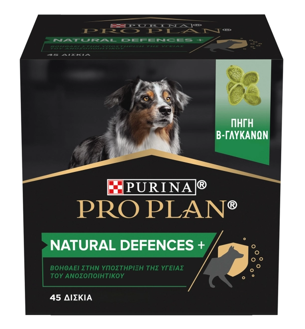 Το PRO PLAN® Natural Defences + είναι ένα καθημερινό συμπλήρωμα διατροφής, σχεδιασμένο απο κτηνιάτρους και διατροφολόγους κατοικιδίων, για την διατήρηση της υγείας του ανοσοποιητικού των σκύλων.