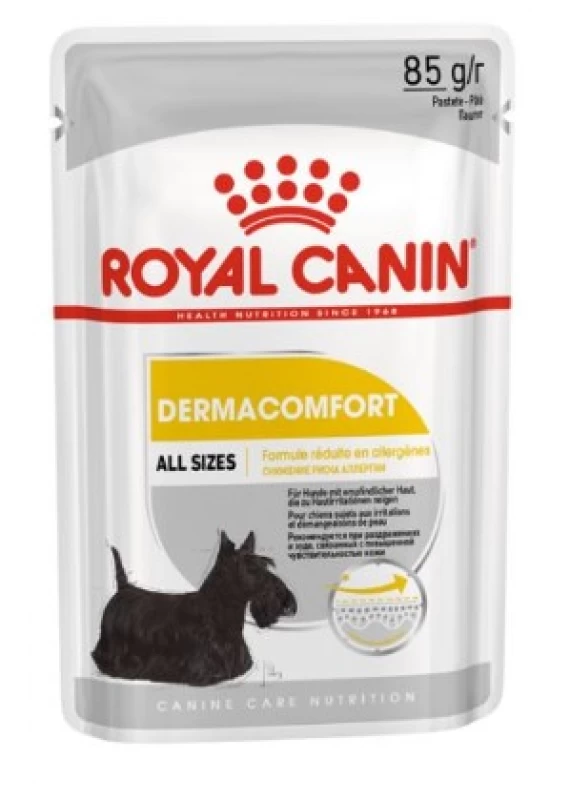 Η κατάσταση του δέρματος αντικατοπτρίζει την υγεία του σκύλου και μια κατάλληλη διατροφή παίζει σημαντικό ρόλο στη διατήρηση της ποιότητας του δέρματος. Η ειδική φόρμουλα MINI DERMACOMFORT με επιλεγμένες πηγές πρωτεΐνης πολύ υψηλής ποιότητας είναι ιδιαιτέρως κατάλληλη για σκύλους με ευαισθησία σε δερματικούς ερεθισμούς και κνησμό. Μετά από 1 μήνα, το 87%* των ιδιοκτητών σκύλων αντιλήφθηκε μείωση στον κνησμό. *Εσωτερική μελέτη της Royal Canin, 2009 ? Μελέτη που διεξήχθη σε 82 σκύλους με ευαίσθητο δέρμα.
