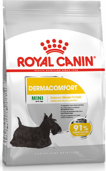 Φόρμουλα μειωμένων αλλεργιογόνων. Ειδική φόρμουλα με επιλεγμένες πηγές πρωτεϊνών πολύ υψηλής ποιότητας. Η DERMACOMFORT είναι ειδικά σχεδιασμένη για σκύλους επιρρεπείς στους δερματικούς ερεθισμούς και τον κνησμό. Κοκτέϊλ για υγιές δέρμα ?Healthy Skin Cocktail?. Ένας μοναδικός συνδυασμός θρεπτικών ουσιών που περιλαμβάνει ένα πατενταρισμένο σύμπλεγμα για την ενίσχυση του ρόλου φραγμού του δέρματος, συνδυασμένο με Ωμέγα 6 λιπαρά οξέα (συμπεριλαμβανομένου γ-λινολεϊκού οξέος) και Ωμέγα 3 λιπαρά οξέα (συμπεριλαμβανομένων EPA και DHA)γνωστά για τις ευεργετικές τους επιδράσεις στο δέρμα. Οδοντική υγεία. Βοηθά στη μείωση του σχηματισμού πέτρας χάρη στους χηλικούς παράγοντες που δεσμεύουν το ασβέστιο του σάλιου.