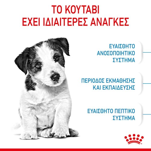 Καλύπτει τις υψηλές ενεργειακές ανάγκες των κουταβιών μικρόσωμων φυλών κατά την περίοδο της ανάπτυξης και ικανοποιεί τις ιδιότροπες ορέξεις.