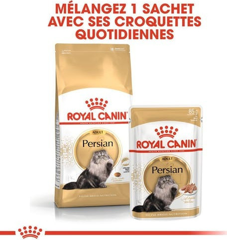 Η ROYAL CANIN Wet Persian είναι μια πλήρης υγρή τροφή ειδικά διαμορφωμένη ώστε να καλύπτει τις διατροφικές ανάγκες της ενήλικης γάτας σας φυλής Περσίας.