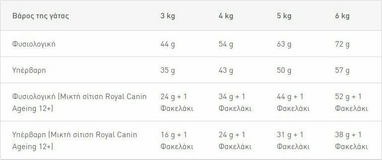 Σε ορισμένες γηραιές γάτες το επίπεδο δραστηριότητας μειώνεται με την ηλιλία, το οποίο μπορεί να οδηγήσει σε αύξηση βάρους. Η AGEING STERILISED 12+ περιέχει μέτριο επίπεδο λίπους που βοηθά στη διατήρηση της ιδανικής θρεπτικής κατάστασης. Η φόρμουλα είναι εμπλουτισμένη με L-carnitine.