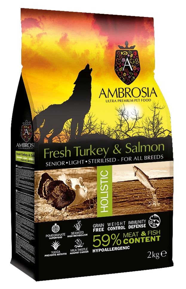 Ambrosia Senior Grain Free Light Salmon & Fresh Turkey 12kg Ξηρά Τροφή Διαίτης για Ηλικιωμένους Στειρωμένους Σκύλους με Γαλοπούλα και Σολομό