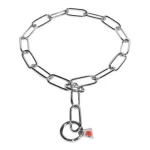 With our chain collar made of stainless steel, your four-legged friend is ready for the next training session. The robust material is rustproof, withstands wind and weather during extensive walks and is also ideal for water lovers. The long chain links are especially coat-friendly and reduce hair breakage on long and fine coats. As the chain has to be slipped over the dog's head, you should also take the head circumference into account when choosing the right size! We recommend collars with a ClicLock or SPRENGER hook for dogs with a significantly larger head than neck circumference.