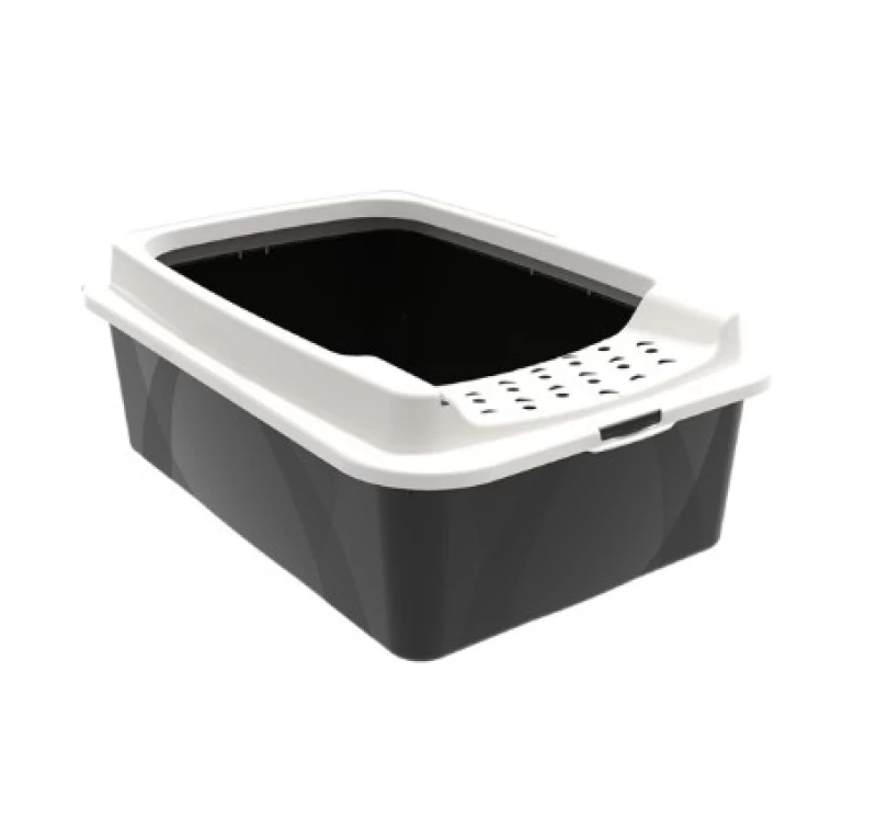 Επίπεδη λεκάνη υγιεινής με μοντέρνο στυλ. Κατάλληλη και για μεγαλύτερες φυλές γατών, χάρη στο μεγάλο άνοιγμα. Ο σχεδιασμός του πλαισίου διασφαλίζει ότι όσο το δυνατόν λιγότερα απορρίμματα από τα πόδια της γάτας θα καταλήγουν στον περιβάλλοντα χώρο. Γενικότερα το χαμηλό ύψος αυτής της λεκάνης επιτρέπει πολύ εύκολο καθαρισμό ακόμη και στο νεροχύτη ή τον νιπτήρα, ενώ το πλαίσιο μπορεί να αφαιρεθεί και να πλυθεί ξεχωριστά.
