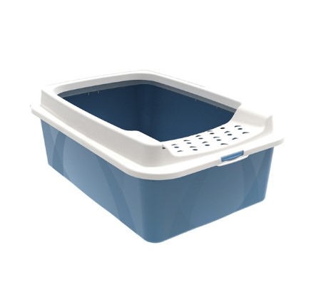 Επίπεδη λεκάνη υγιεινής με μοντέρνο στυλ. Κατάλληλη και για μεγαλύτερες φυλές γατών, χάρη στο μεγάλο άνοιγμα. Ο σχεδιασμός του πλαισίου διασφαλίζει ότι όσο το δυνατόν λιγότερα απορρίμματα από τα πόδια της γάτας θα καταλήγουν στον περιβάλλοντα χώρο. Γενικότερα το χαμηλό ύψος αυτής της λεκάνης επιτρέπει πολύ εύκολο καθαρισμό ακόμη και στο νεροχύτη ή τον νιπτήρα, ενώ το πλαίσιο μπορεί να αφαιρεθεί και να πλυθεί ξεχωριστά.