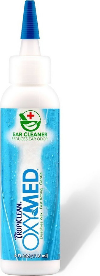To Tropiclean Oxymed Ear Cleaner είναι ήπιο, δρα άµεσα, βοηθά στην αποµάκρυνση του κεριού και την µείωση της άσχηµης µυρωδιάς. Συχνή χρήση διατηρεί σε άριστη κατάσταση της υγείας των αυτιών του σκύλου και της γάτας.