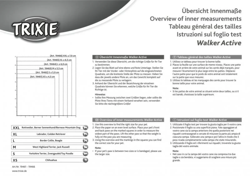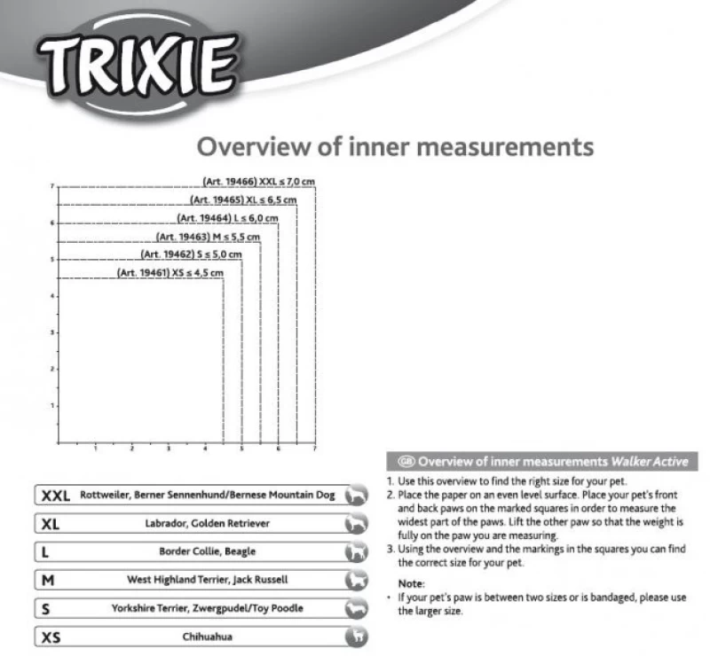 Download: Διαστάσεις Walker Active Προστατευτικές μπότες κωδικοί 19461-19467