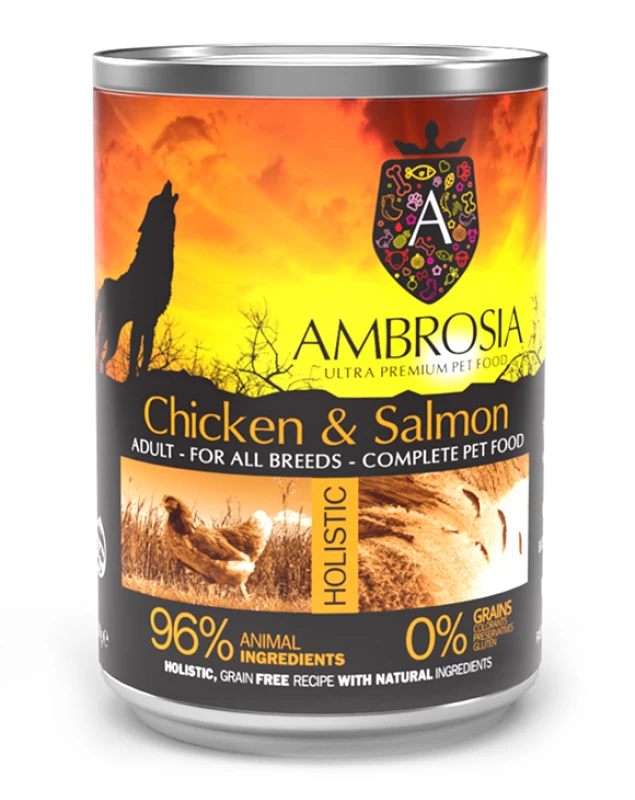 Υγρή Τροφή Σκύλου Ambrosia Grain Free Adult Fresh Κοτόπουλο Και Σολομός 400gr